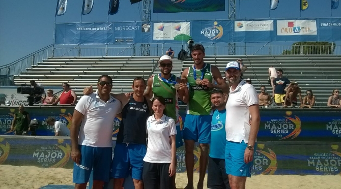 Si è chiuso con uno splendido podio il Major di Porec degli azzurri Alex Ranghieri e Adrian Carambula, terzi classificati nella tappa croata del World Tour. I ragazzi di Paulao hanno raggiunto questo grande risultato, grazie alla vittoria 2-1 (21-18, 18-21, 15-10) contro gli olandesi Nummerdor-Varenhorst. Un successo pienamente meritato da Alex e Adrian che ancora una volta hanno dato mostra di tutte le proprie qualità, come già evidenziato in tutto l’arco del torneo. Nella finalina Ranghieri-Carambula, scesi in campo solamente a distanza di un’ora dalla semifinale, hanno comandato il gioco nel primo set mentre nel secondo sono stati gli olandesi a dettare il ritmo. A netto favore degli italiani il tie-break che ben presto si è trasformato in un monologo azzurro. Per la coppia nata quest’anno si tratta del primo podio in carriera nel World Tour, traguardo arrivato dopo sole due tappe disputate. Un punto di partenza molto incoraggiante che lascia ben sperare per la continuazione della stagione di Ranghieri-Carambula, soprattutto in prospettiva della qualificazione olimpica ai giochi di Rio 2016. Nel corso del torneo Alex e Adrian si sono tolti la soddisfazione di battere coppie molto forti, tra i quali i brasiliani Evandro-Pedro e le leggende Ricardo-Emanuel. A fermare il sogno di approdare in finale degli azzurri, sono stati invece i campioni del Mondo olandesi Brouwer-Meeuwsen, che in semifinale si sono imposti 2-1 (18-21, 21-17, 15-9) al termine di una gara molto combattuta. In chiave generale il terzo posto rappresenta un altro prestigioso risultato ottenuto dal beach volley azzurro in questo promettente avvio di 2015. Nell’arco di circa un mese, infatti, prima è arrivata l’importantissima qualificazione alla fase finale della Continental Cup, poi lo straordinario successo a Lucerna di Ranghieri-Caminati e la scorsa settimana il podio nel Grand Slam di Mosca di Menegatti-Orsi Toth. A tutto questo si aggiunge oggi il terzo posto di Ranghieri-Carambula, testimonianza ulteriore della validità del progetto tecnico sul quale la Fipav sta investendo in maniera importante e che vede a capo Paulao e Lissandro, affiancati dai rispettivi staff.