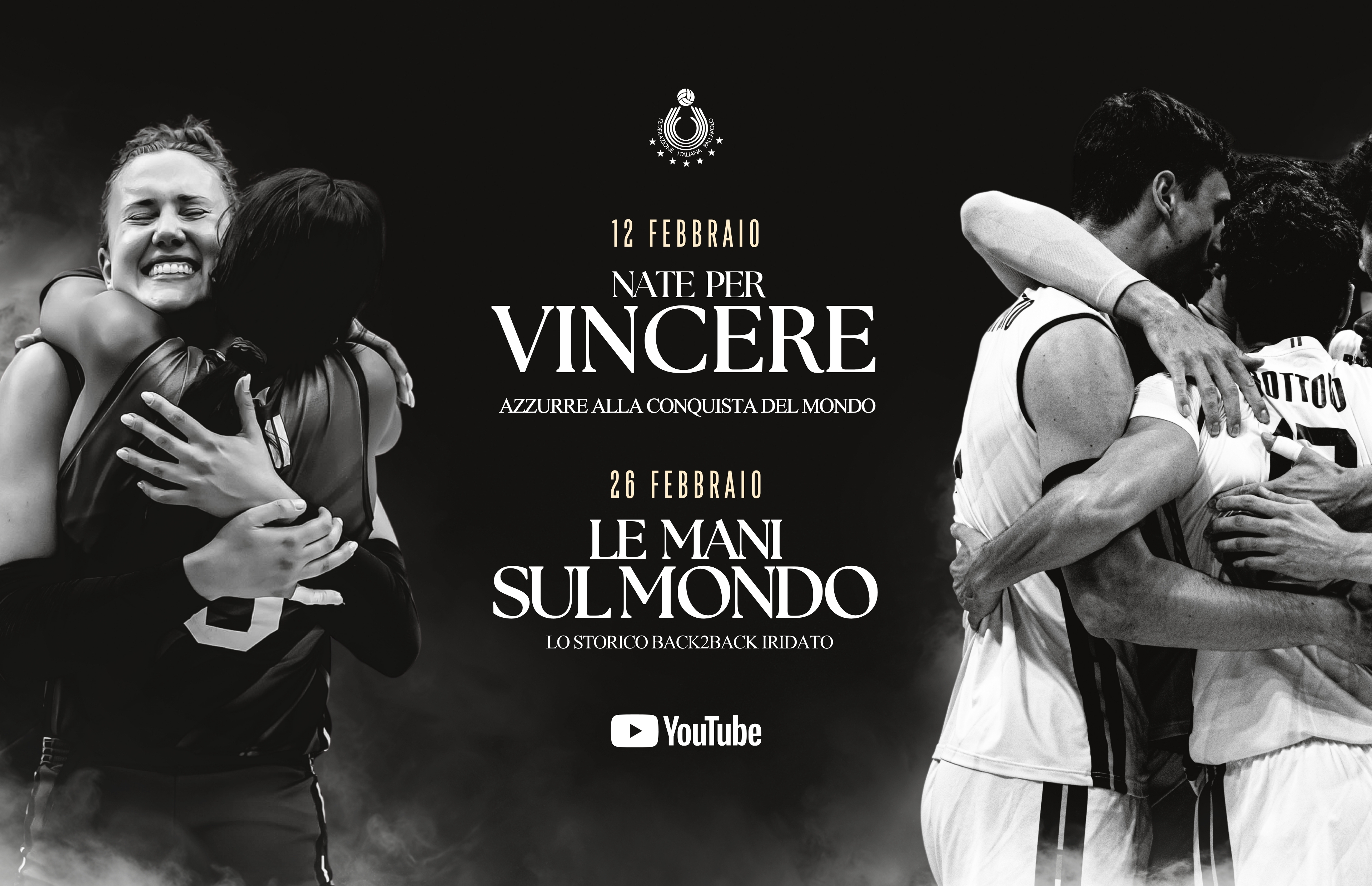 Nate per vincere – Azzurre alla conquista del mondo (questo il titolo scelto per la narrazione dedicata ad Anna Danesi e compagne) sarà disponibile gratuitamente sul canale YouTube FIPAV (QUI) a partire dalle ore 19 di giovedì 12 febbraio, mentre quello maschile (Le mani sul mondo – Lo storico back2back iridato) andrà in onda sullo stesso canale in premiere giovedì 26 febbraio sempre alle ore 19.