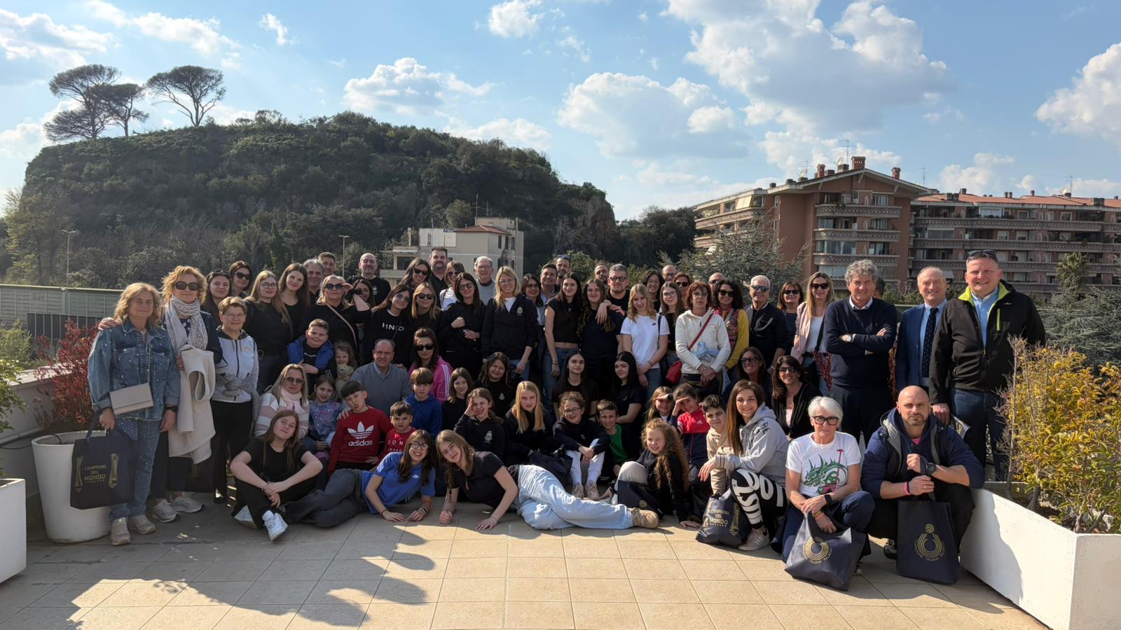 *In copertina la Benacus Volley Bardolino nella terrazza della sede FIPAV, sopra in visita alla Sala del Consiglio Federale.