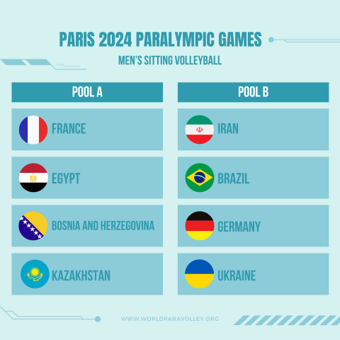 La Federazione Internazionale di Sitting Volley (World ParaVolley), dopo la conclusione dell’ultimo torneo di qualificazione tenutosi a Dali, in Cina, ha ufficializzato oggi la composizione delle pool dei tornei paralimpici femminili e maschili, in programma a Parigi dal 29 agosto al 7 settembre.